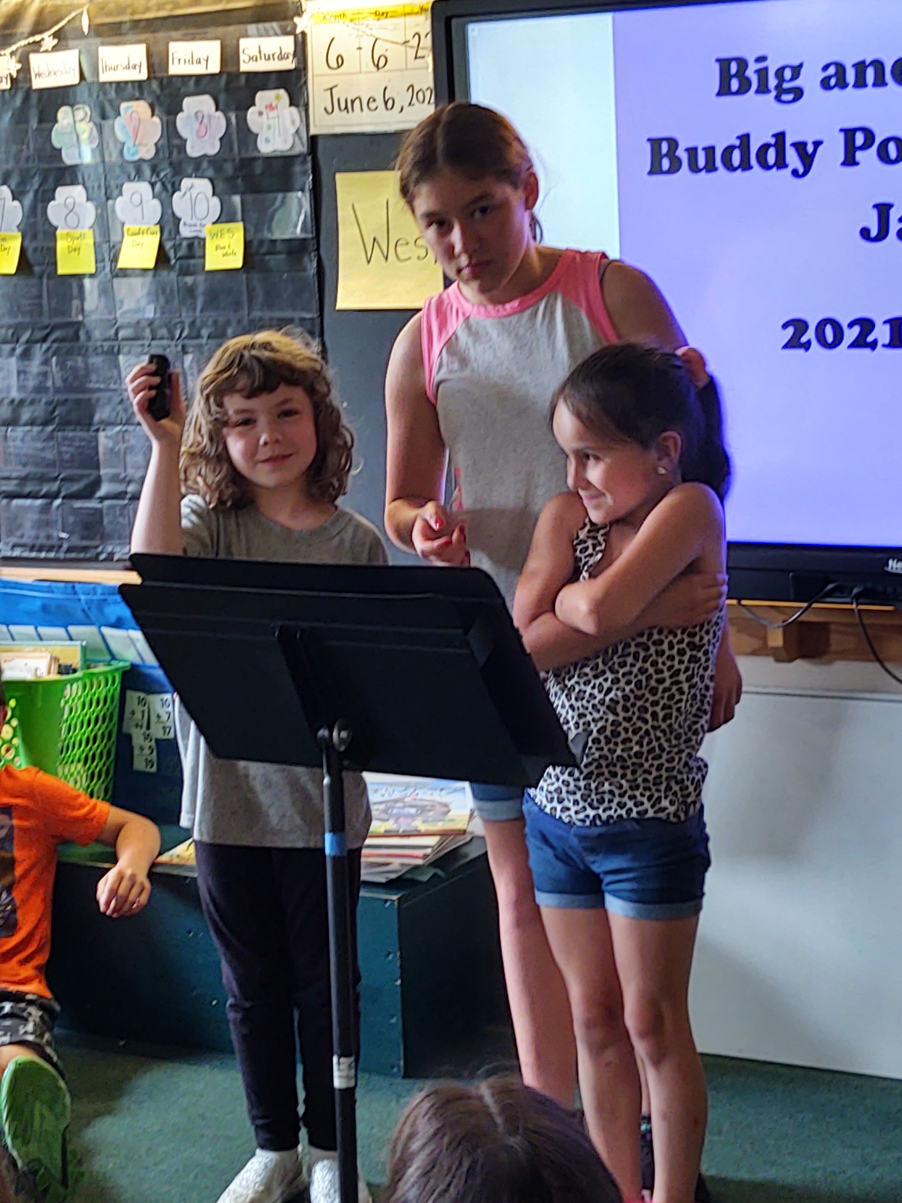 Our first and second graders chose their favorite poems from a variety of authors and styles to read at our Poetry Slam Jam! Together with our Big Buddies from Mr. Braun's class we practiced reading our poems for accuracy, fluency and FUN for weeks. Today we presented our poems to the class!